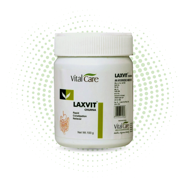 Laxvit churna is a herbal laxative created by the Vital Care research and development team. It contains numerous herbs that improve bowel movement and relieve chronic constipation.